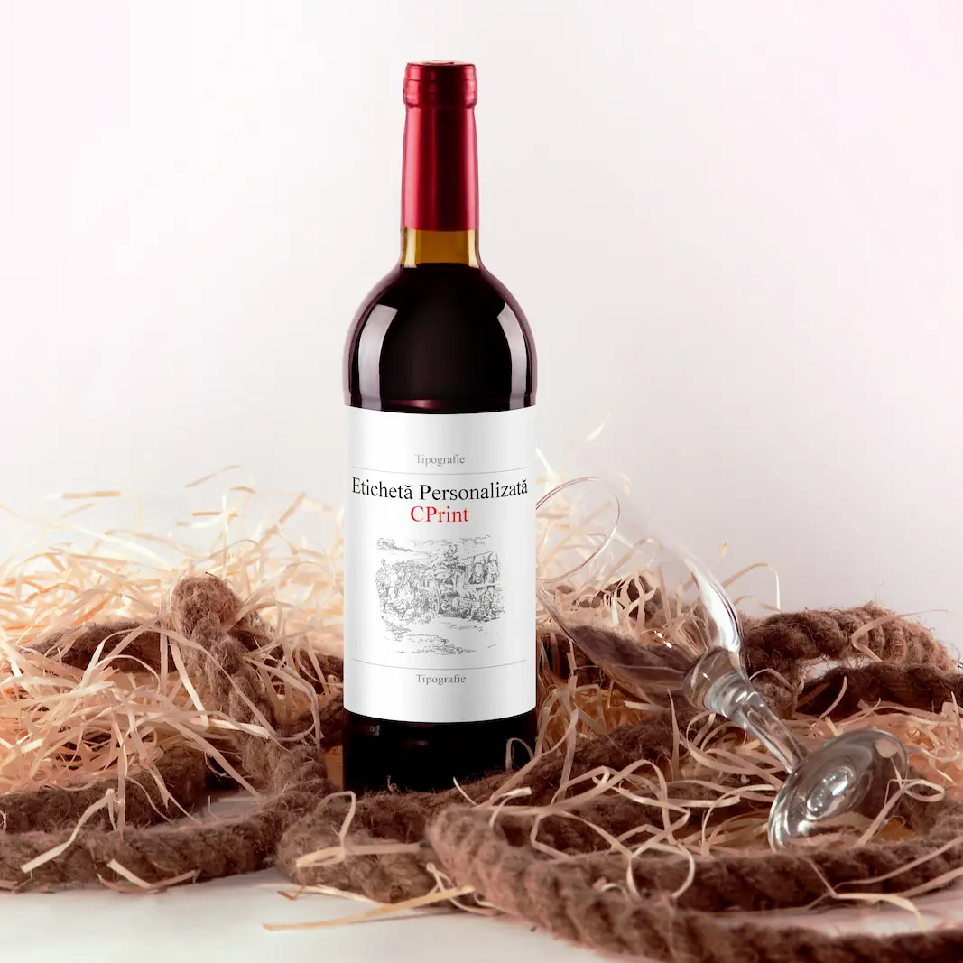 Cutia de vin poate fi personalizată cu text, iar eticheta de vin cu text și poză